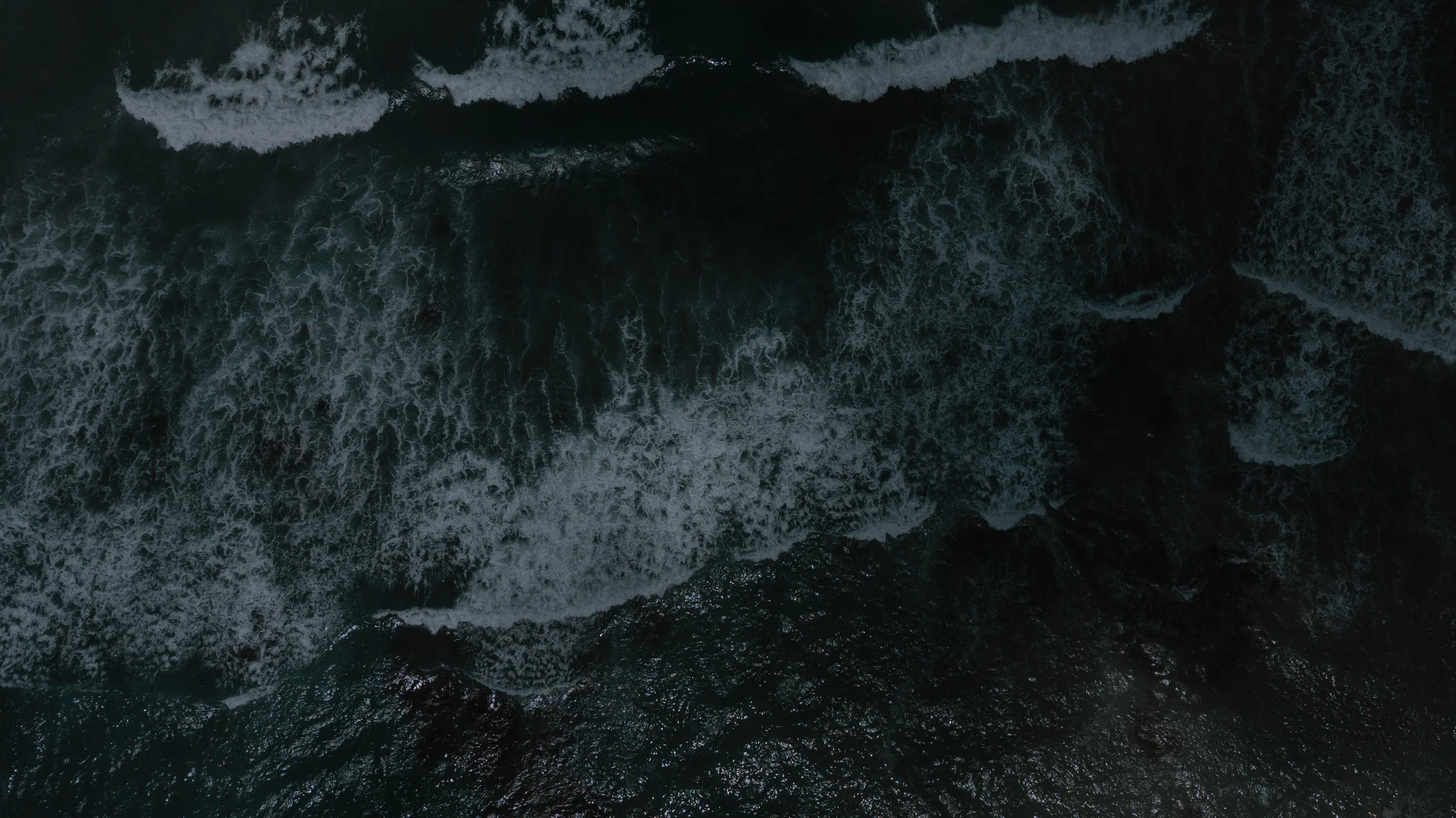 Waves fracture across dark emerald water, breaking into white lines that feel almost drawn rather than formed. The ocean becomes texture and movement — abstract yet powerful, rhythmic.